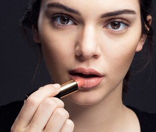 Подготовьте губы с помощью бальзама для губ. Обведите контур губ карандашом более темного оттенка, чем помада. Сверху вниз проведите три вертикальные линии, пересекающие обе губы: по одной с каждой стороны и посередине. Легкими движениями нанесите помаду.
