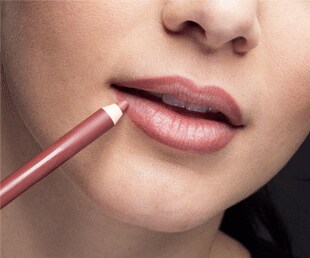 Обведите контур губ прозрачным карандашом для губ. Закрасьте губы карандашом с оттенком.